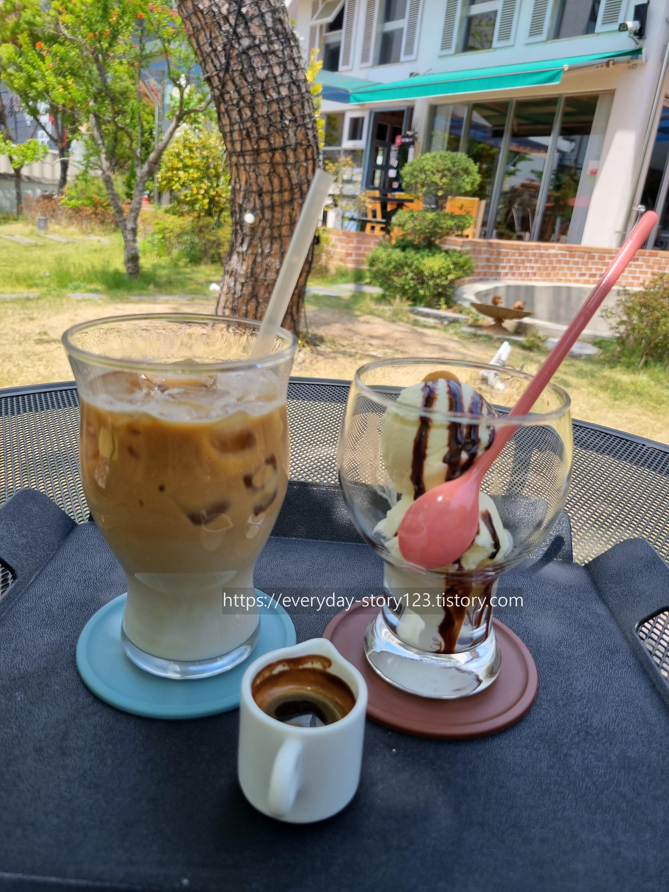 아이스 카페라떼와 아포가토를 시켰어요.