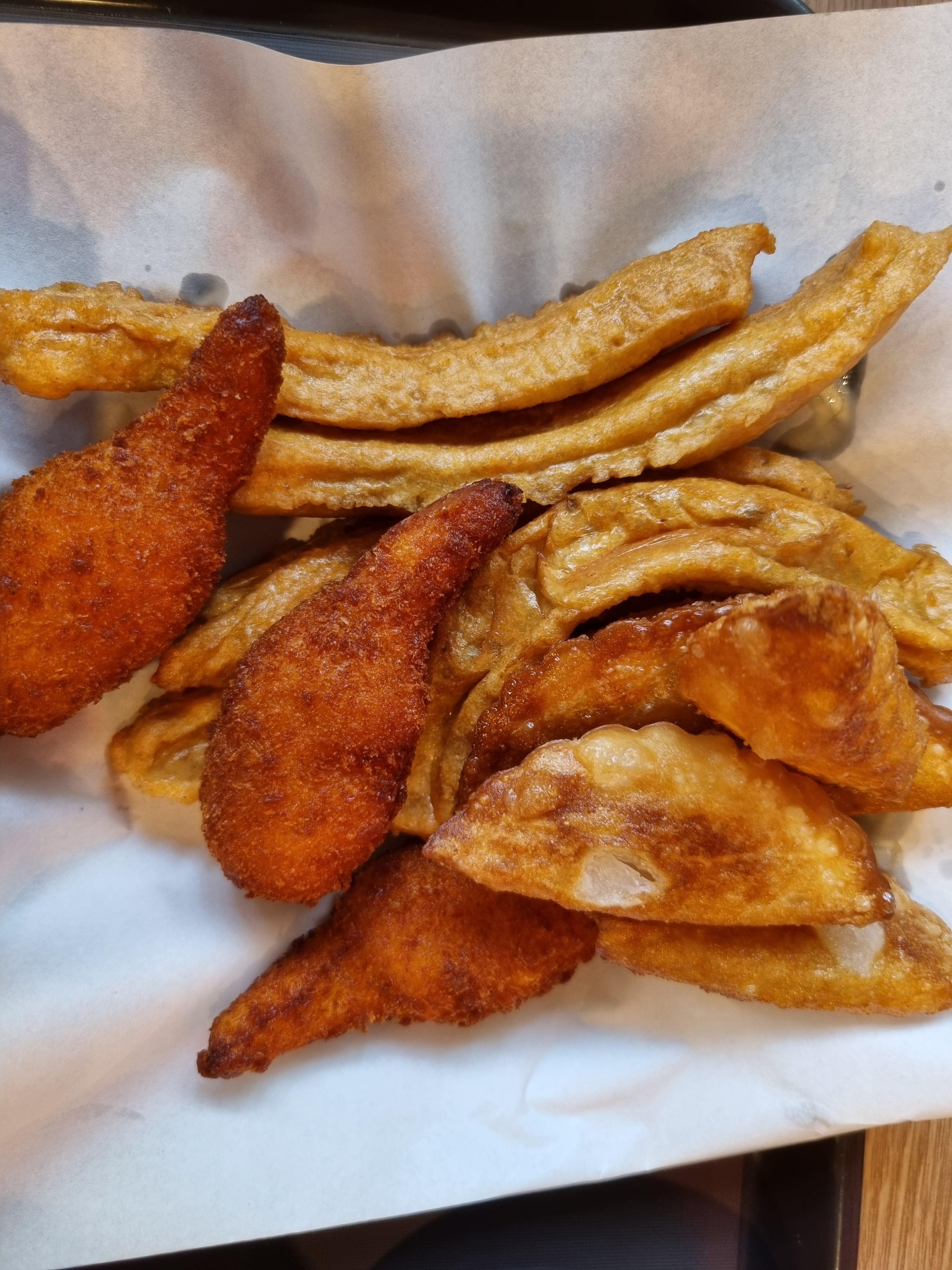 오뎅이랑 만두, 게살 튀김을 시켰어요.