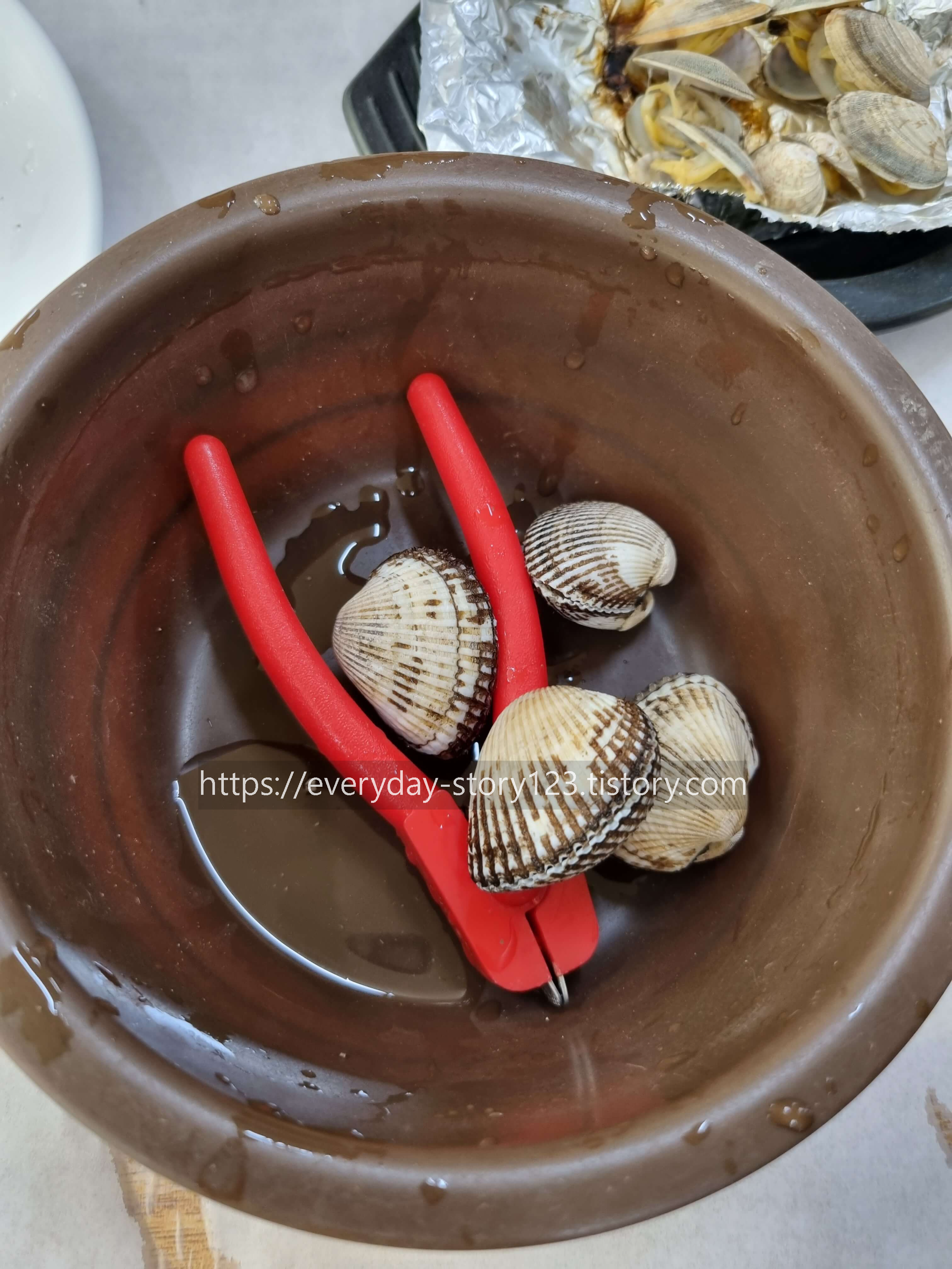 사진에서의 빨간 집게 같은 걸 같이 주시는데 이걸로 꼬막을 어떻게 열어서 먹는지 직원분이 친절하게 안내해주십니다 ^^